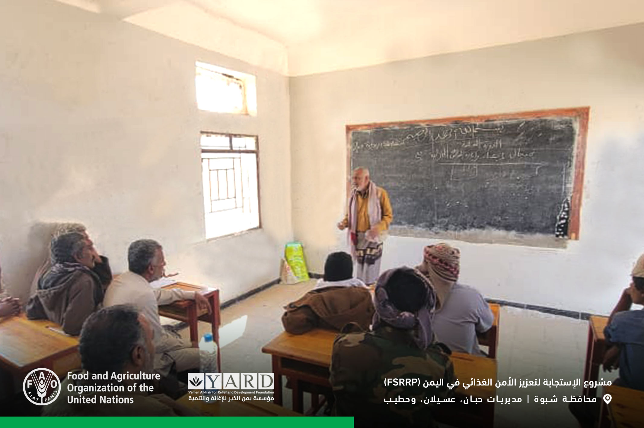 As part of the "Food Security Response Enhancement Project," in partnership with the Food and Agriculture Organization (FAO), Yemen Al-Khair for Relief and Development Foundation (YARD), in coordination with the Shabwah Agriculture and Irrigation Office, launched a specialized training course on home garden management for beneficiaries in Habban District.